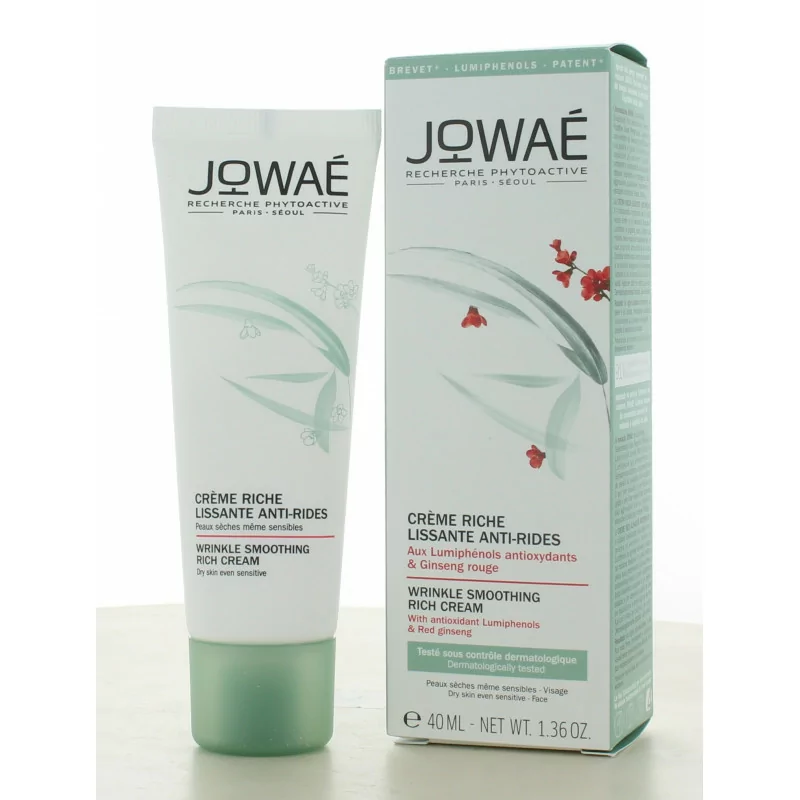La Crème Riche Lissante Anti-rides Jowaé, également enrichie en Ginseng rouge, hydrate, repulpe et raffermit la peau jour après jour.