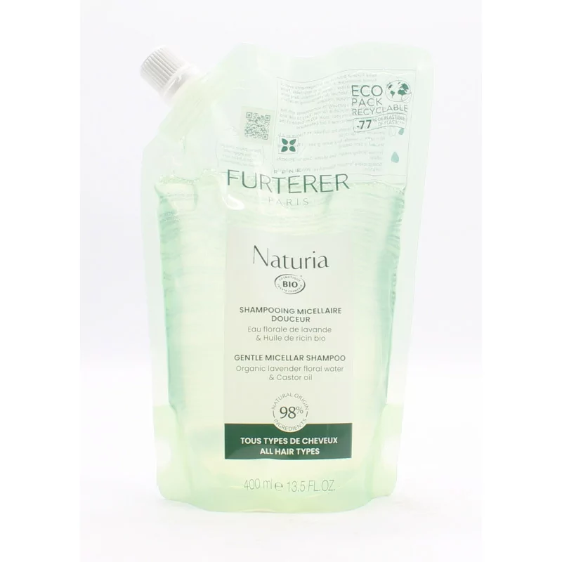 Le Shampooing Micellaire Douceur Furterer Naturia est un shampooing à base d’eau florale de lavande et d’huile de ricin bio.